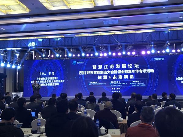 2017年12月6日,江蘇省經(jīng)濟與信息化委員會和中國智慧城市論壇主辦的“世界智能制造大會-2017智慧江蘇發(fā)展論壇”在南京江寧未來科技城南京上秦淮假日酒店三樓大會議室隆重舉辦。參加會議的有省各委辦廳局、各直屬單位CIO信息主管及業(yè)務(wù)處室負責(zé)人,各設(shè)區(qū)市、各縣(市、區(qū))信息化主管部門相關(guān)負責(zé)同志及相關(guān)業(yè)務(wù)處室負責(zé)人,省級以上開發(fā)區(qū)管委會相關(guān)負責(zé)同志,部分省內(nèi)信息化應(yīng)用領(lǐng)域重點企業(yè)負責(zé)人等,江蘇南工科技集團執(zhí)行董事陳俊樺參加了會議。