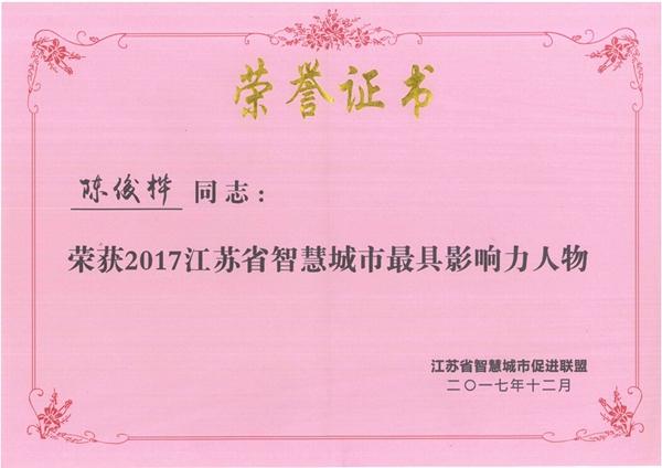 會議頒發(fā)了江蘇省智慧城市聯(lián)盟評選的“江蘇省智慧城市最具影響力人物獎、江蘇省智慧城市先鋒人物獎、江蘇省智慧城市領(lǐng)軍企業(yè)獎”等獎項。江蘇南工科技集團執(zhí)行董事陳俊樺獲“2017江蘇省智慧城市最具影響力人物獎”。