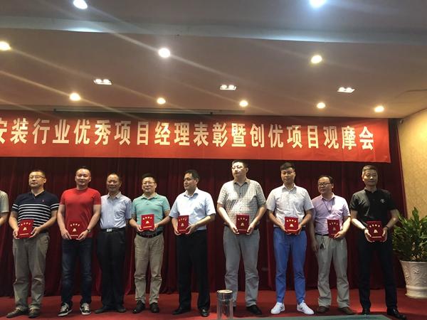 會(huì)議對(duì)2017年度江蘇省安裝行業(yè)優(yōu)秀項(xiàng)目經(jīng)理獲得者進(jìn)行了表彰并頒獎(jiǎng)。集團(tuán)常務(wù)副總經(jīng)理夏鳴、副總經(jīng)理張偉、副總工程師周志剛、業(yè)務(wù)管理部商務(wù)經(jīng)理張濤、經(jīng)營(yíng)管理部商務(wù)經(jīng)理于利將等榮獲了2017年度江蘇省安裝行業(yè)優(yōu)秀項(xiàng)目經(jīng)理。
