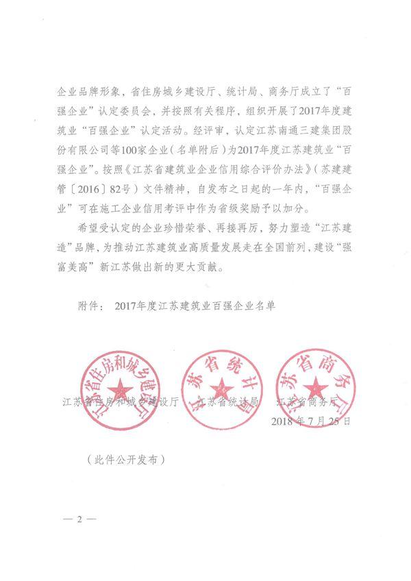 近日,江蘇省住房城鄉(xiāng)建設(shè)廳、江蘇省統(tǒng)計局、江蘇省商務(wù)廳聯(lián)合發(fā)布2017年度全省建筑業(yè)“百強企業(yè)”名單,江蘇南工科技集團有限公司以出色的成績榮登百強企業(yè)榜單。