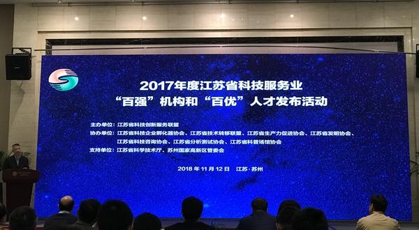 2018年11月12日,2017年度江蘇省科技服務(wù)業(yè)“百?gòu)?qiáng)”機(jī)構(gòu)和“百優(yōu)”人才發(fā)布活動(dòng)在蘇州清山會(huì)議中心舉行。參加會(huì)議的有江蘇省科技廳副廳長(zhǎng)景茂,江蘇省科技廳科技機(jī)構(gòu)與條件處副處長(zhǎng)李漢中,江蘇省科技創(chuàng)新服務(wù)聯(lián)盟理事長(zhǎng)、省生產(chǎn)力促進(jìn)中心主任趙志強(qiáng),蘇州高新區(qū)管委會(huì)副主任陶冠紅,蘇州高新區(qū)管委會(huì)科創(chuàng)局局長(zhǎng)顧彩亞等領(lǐng)導(dǎo)及專家和各百?gòu)?qiáng)機(jī)構(gòu)人才代表。江蘇南工科技集團(tuán)有限公司副總經(jīng)理吳雪峰參加了會(huì)議。