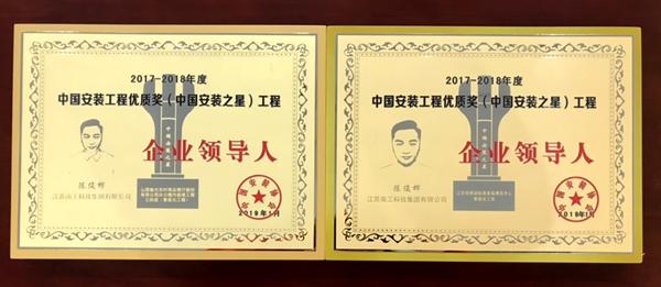 集團執(zhí)行董事陳俊樺榮獲2017-2018年度中國安裝工程優(yōu)質(zhì)獎(中國安裝之星)工程企業(yè)領(lǐng)導(dǎo)人特別榮譽證書,集團卞東年、迮小勇榮獲2017-2018年度中國安裝工程優(yōu)質(zhì)獎(中國安裝之星)工程項目經(jīng)理特別榮譽證書。
