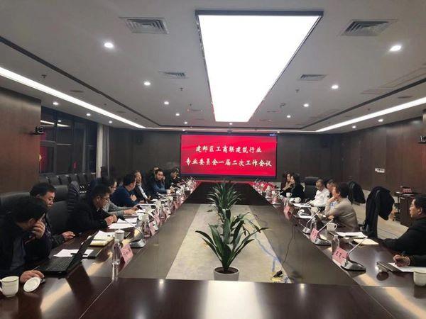 2020年12月18日,南京市建鄴區(qū)工商聯(lián)建筑行業(yè)專業(yè)委員會一屆二次工作會議在金陵建工集團召開。參加會議的有建鄴區(qū)委常委、統(tǒng)戰(zhàn)部部長周迅,建鄴區(qū)工商聯(lián)主席、統(tǒng)戰(zhàn)部副部長樊誼,建鄴區(qū)工商聯(lián)副主席、委員會主任、金陵建工集團董事長范廣峰,建鄴區(qū)工商聯(lián)副主席范慰民,以及十多位建鄴區(qū)建筑行業(yè)專業(yè)委員會委員等,委員會辦公室主任、江蘇南工科技集團有限公司執(zhí)行董事陳俊樺參加了會議。