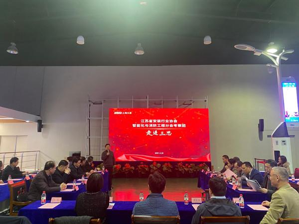 2021年3月18-19日,江蘇省安裝行業(yè)協(xié)會智能化與消防工程分會組織部分企業(yè)到上海三思電子工程有限公司考察??疾靾F一行在上海三思電子工程有限公司副董事長陳鳴、董事王彪、副總經(jīng)理張佰明等陪同下考察了三思上??偛亢驮诩紊频墓S。