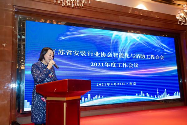 2021年4月27日,江蘇省安裝行業(yè)協(xié)會智能化與消防工程分會2021年度年會在南京召開。參加會議的有江蘇省安裝行業(yè)協(xié)會駐會副會長鄒金林,會長助理顧建生,副會長、智能化與消防工程分會分會會長陳曉,秘書長吳輝,監(jiān)事、副秘書長祖詠,副秘書長席天陽。南京安全技術(shù)防范行業(yè)協(xié)會秘書長張亞忠,江蘇省自動化學會智慧城市&建筑智能化專業(yè)委員會主任何建國,江蘇省土木建筑學會智能建筑與智慧城市專業(yè)委員會主任臧勝,江蘇省勘察設計行業(yè)協(xié)會智能建筑工作委員會會長管清寶。分會常務副會長吳星紅,副會長劉昌華、陳俊樺、顧永松、周蓉蓉、徐本裕、肖忠海、蔡明、袁媛、唐世威、吳天威、任霞芬、鄧銀波,分會顧問葉浩生,分會副秘書長兼專家委員會主任王建明,副秘書長陳霞、李英,分會專家委員會副主任張慶松及專家、會員企業(yè)代表等200多人。江蘇南工科技集團有限公司常務副總經(jīng)理夏鳴、副總經(jīng)理吳雪峰參加了會議。