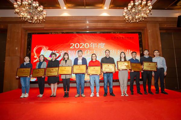 鄒金林駐會副會長作了重要講話,鄒金林、吳輝向榮獲2020年度江蘇省智能化與消防工程科技創(chuàng)新企業(yè)頒發(fā)了證書、獎牌。