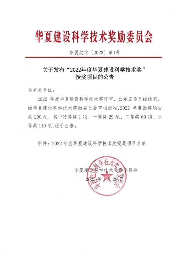 2023年1月28日,2022年度華夏建設(shè)科學(xué)技術(shù)獎(jiǎng)?wù)桨l(fā)布,集團(tuán)參編的《建設(shè)工程消防驗(yàn)收技術(shù)指南》榮獲《華夏建設(shè)科學(xué)技術(shù)獎(jiǎng)》三等獎(jiǎng)。