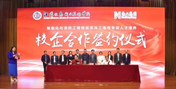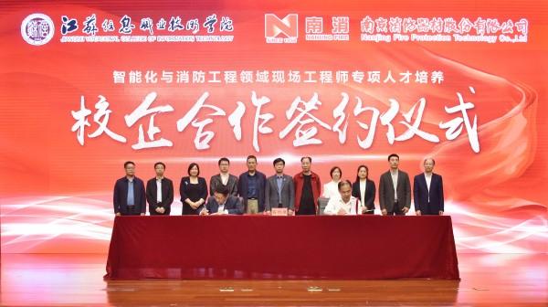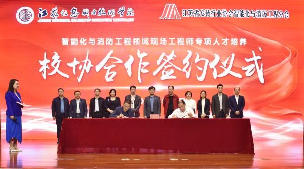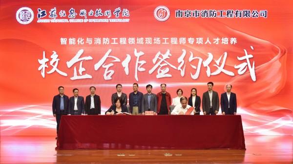 張瑜校長代表江蘇信息職業(yè)技術(shù)學(xué)院與江蘇省安裝行業(yè)協(xié)會智能化與消防工程分會、江蘇南工科技集團有限公司、南京市消防工程有限公司、南京消防器材股份有限公司等分別簽訂了校協(xié)、校企合作協(xié)議。