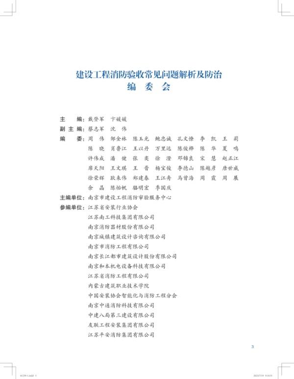 2023年7月31日,由江蘇省住房和城鄉(xiāng)建設(shè)廳建設(shè)工程消防管理處、南京市建設(shè)工程消防審驗(yàn)服務(wù)中心主編的《建設(shè)工程消防驗(yàn)收常見問題解析及防治》正式出版發(fā)行。江蘇南工科技集團(tuán)有限公司是主要參編單位。