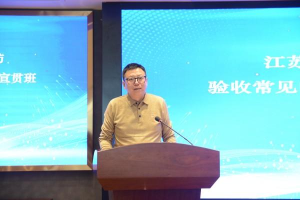 指南課題組組長(zhǎng)、江蘇省安裝行業(yè)協(xié)會(huì)智能化與消防工程分會(huì)會(huì)長(zhǎng)、江蘇南工科技集團(tuán)有限公司總經(jīng)理陳曉,代表課題組做了《建設(shè)工程消防驗(yàn)收常見(jiàn)問(wèn)題解析及防治指南》課題研究情況介紹。