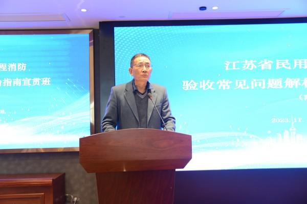 南通市住房和城鄉(xiāng)建設(shè)局建設(shè)工程消防管理處處長(zhǎng)孫薦,江蘇省安裝行業(yè)協(xié)會(huì)副會(huì)長(zhǎng)、秘書(shū)長(zhǎng)顧建生等領(lǐng)導(dǎo)出席了宣貫會(huì)并作了重要講話。