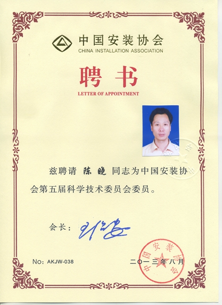 中國安裝協(xié)會第五屆科學技術委員會委員(陳曉)