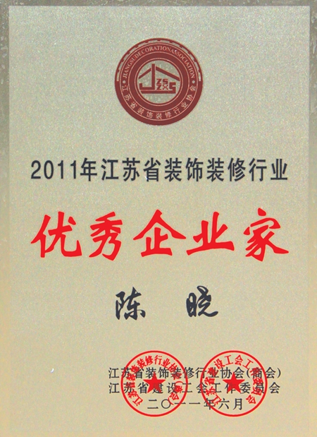 江蘇省裝飾裝修行業(yè)優(yōu)秀企業(yè)家(陳曉)