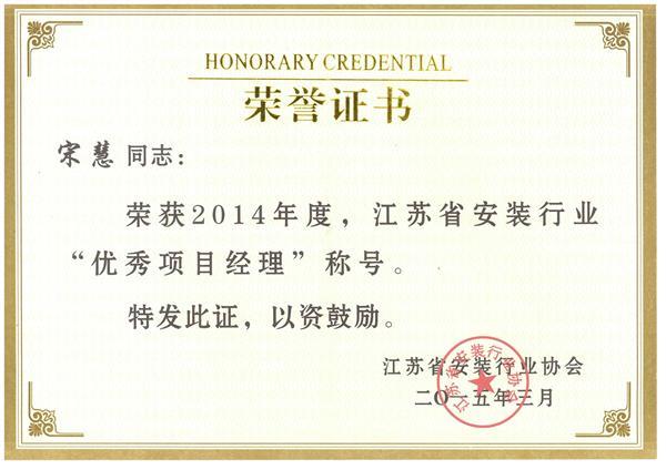 優(yōu)秀項(xiàng)目經(jīng)理榮譽(yù)證書(宋慧)