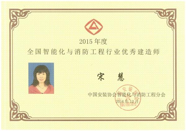 2015年度全國智能化與消防工程行業(yè)優(yōu)秀建造師(宋慧)