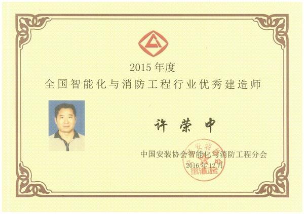 2015年度全國智能化與消防工程行業(yè)優(yōu)秀建造師(許榮中)