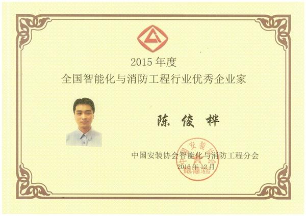 2015年度全國智能化與消防工程行業(yè)優(yōu)秀企業(yè)家(陳俊樺)