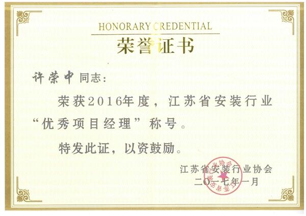 2016年度江蘇省安裝行業(yè)協(xié)會(huì)優(yōu)秀項(xiàng)目經(jīng)理-許榮中
