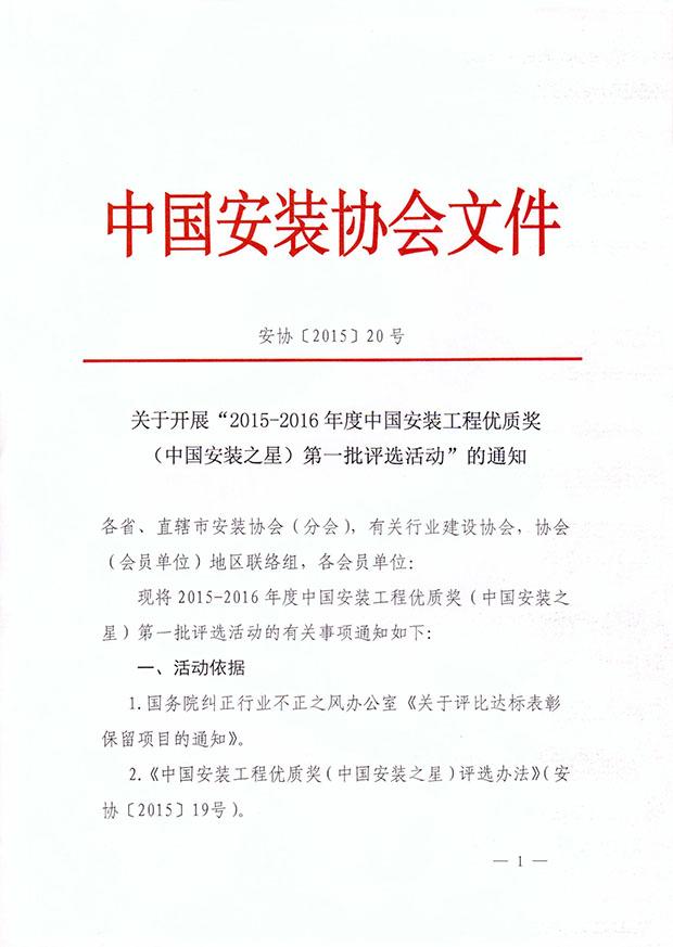 下載附件:2015-2016年中國(guó)安裝工程優(yōu)質(zhì)獎(jiǎng)(中國(guó)安裝之星)第一批申報(bào)工程信息表