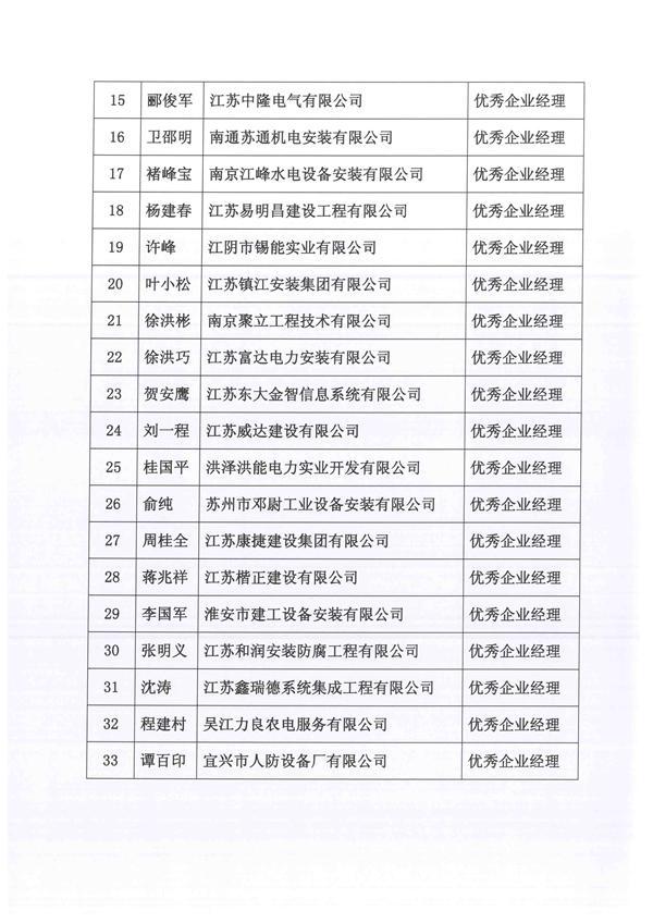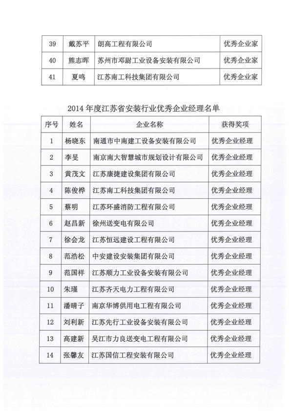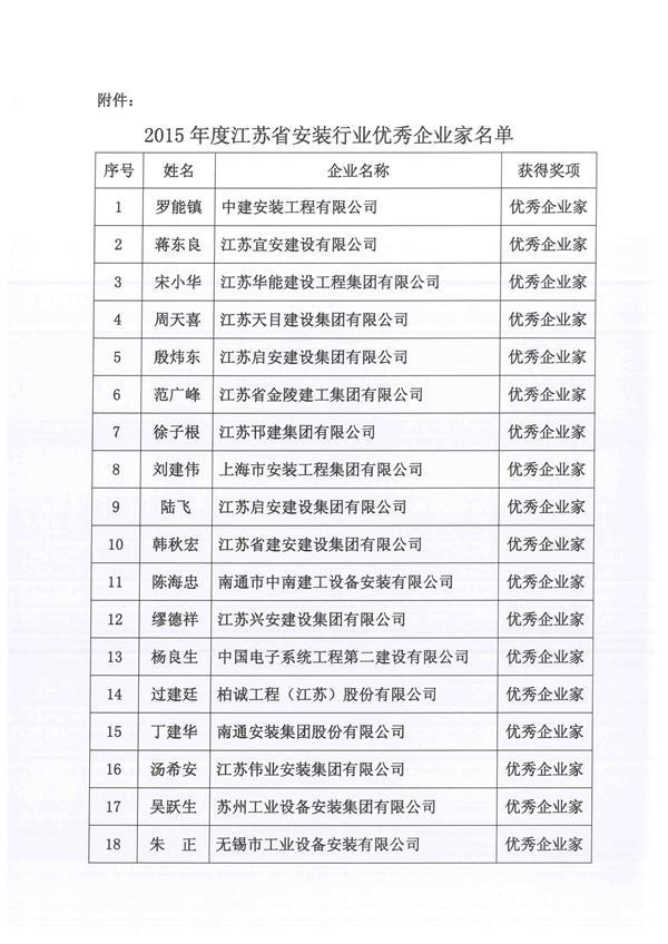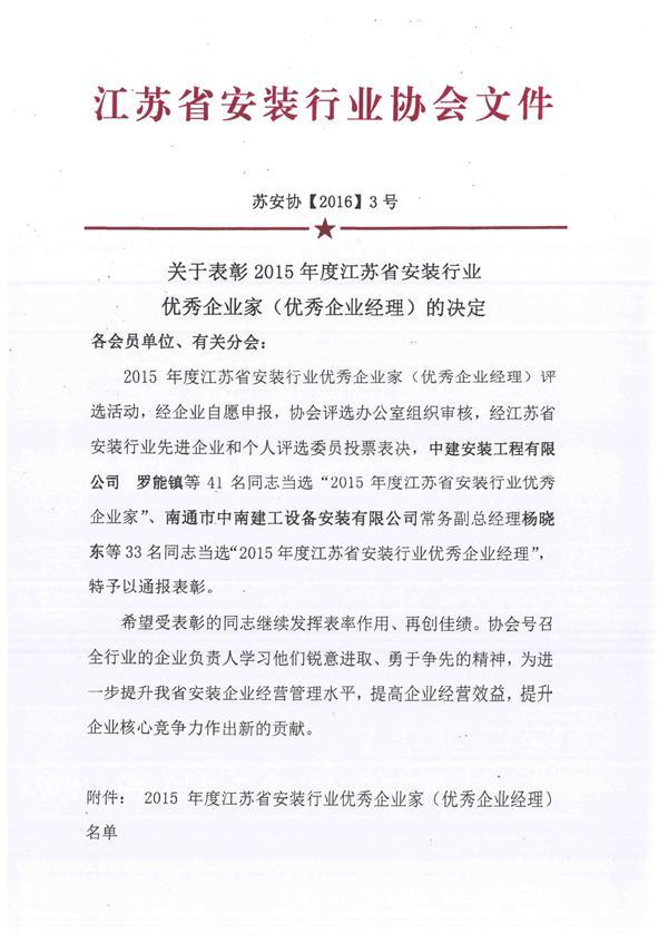 關(guān)于表彰2015年度江蘇省安裝行業(yè)優(yōu)秀企業(yè)家(優(yōu)秀企業(yè)經(jīng)理)的決定