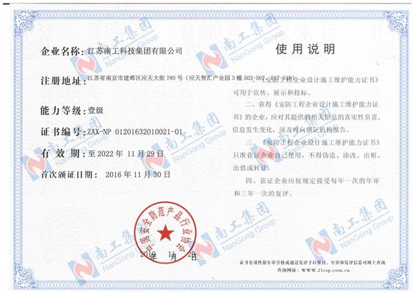 您的位置:集團(tuán)首頁 >> 走進(jìn)南工 >> 企業(yè)資質(zhì) >> 國家安防一級資質(zhì)