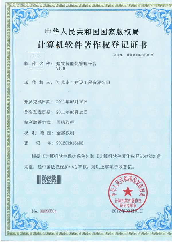 建筑智能化管理平臺證書