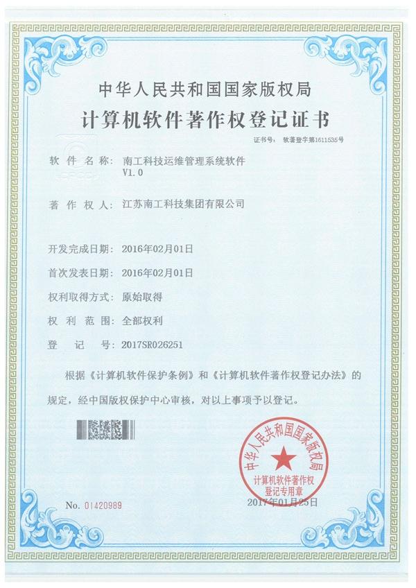 南工科技運維管理系統(tǒng)軟件證書