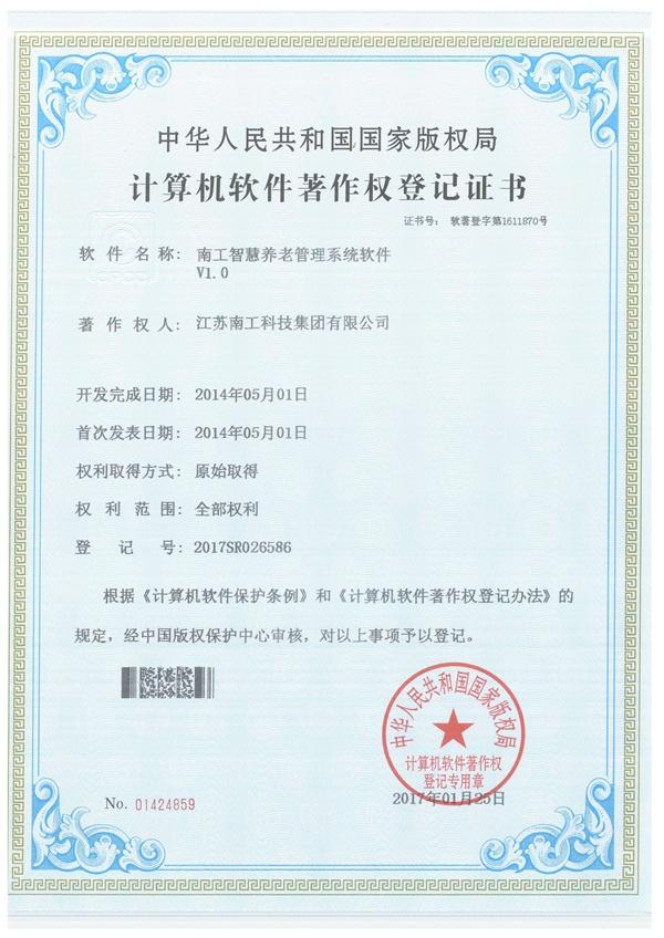 南工智慧養(yǎng)老管理系統(tǒng)軟件證書
