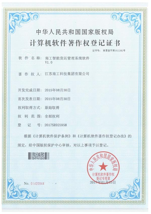 南工智能貨運(yùn)管理系統(tǒng)軟件證書