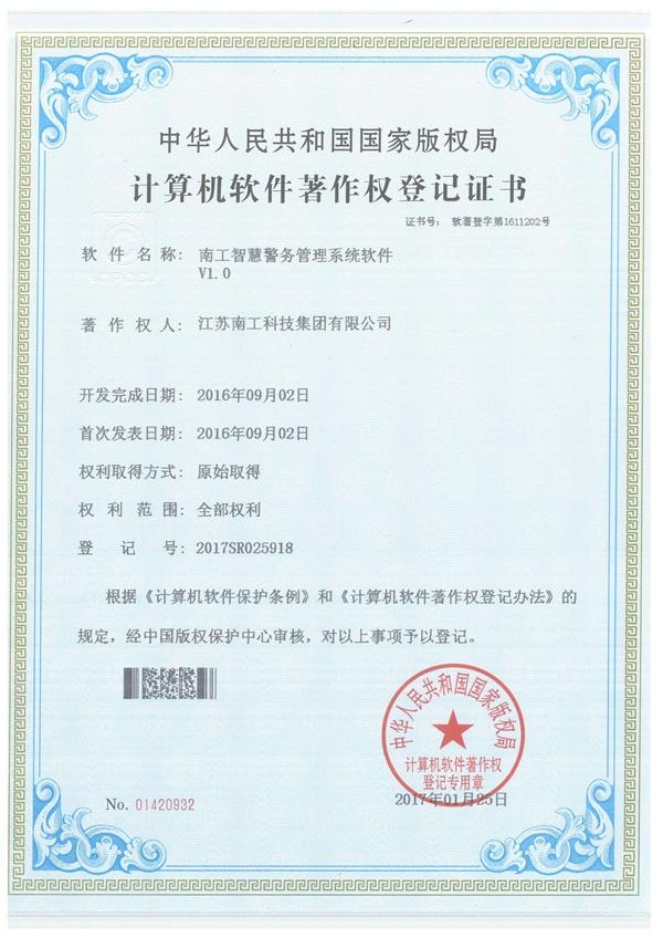 南工智慧警務(wù)管理系統(tǒng)軟件證書(shū)