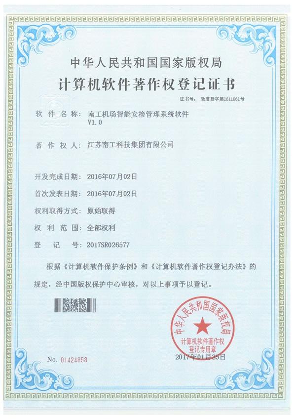 南工機(jī)場(chǎng)智能安檢管理系統(tǒng)軟件證書