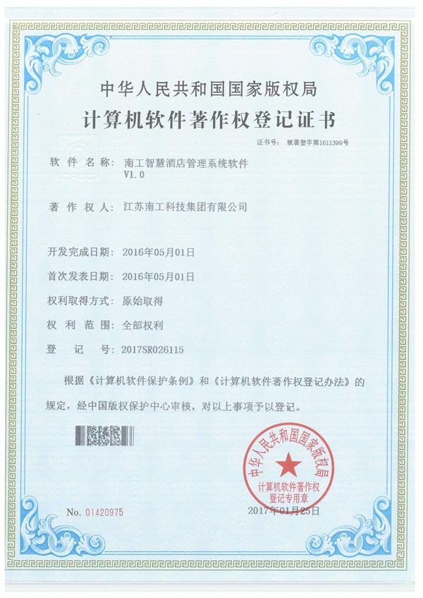 南工智慧酒店管理系統(tǒng)軟件證書